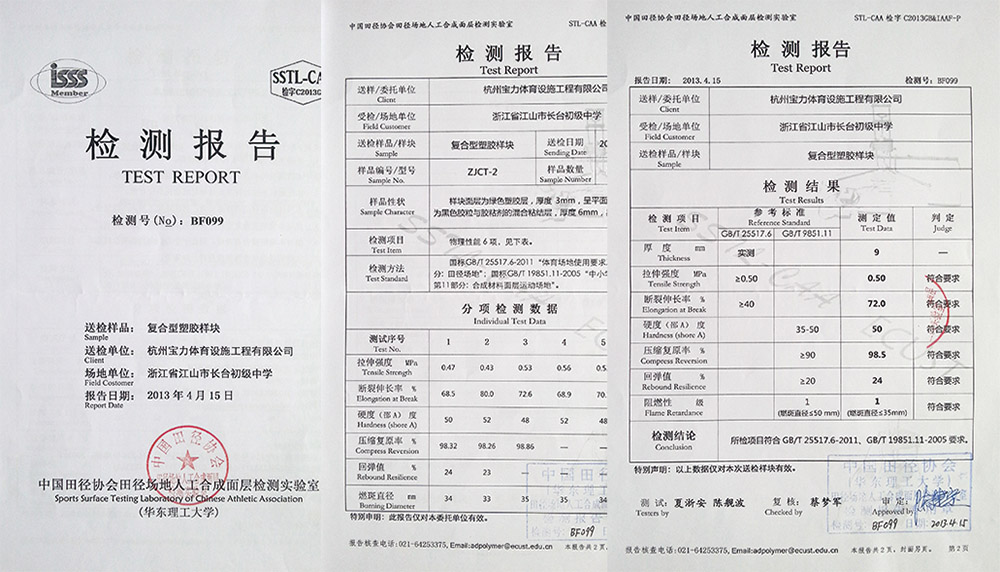 混合型塑膠跑道物理性能檢測(cè)報(bào)告