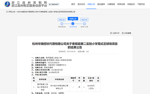 2018年9月4日中標(biāo)泰順縣第二實驗小學(xué)籠式足球場建設(shè)項目公告