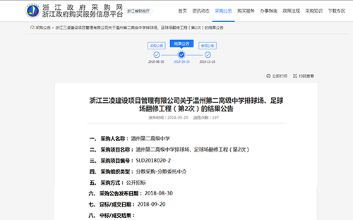 2018年9月20日中標(biāo)溫州第二高級中學(xué)排球場,足球場翻修工程公告