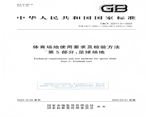 最新發(fā)布的國家標(biāo)準(zhǔn)GB/T 22517.5-2024《體育場(chǎng)地使用要求及檢驗(yàn)方法 第5部分:足球場(chǎng)地》已于2025年2月1日正式實(shí)施。