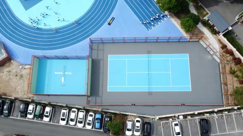 樓頂丙烯酸網(wǎng)球場采用環(huán)保丙烯酸涂料,具備彈性緩沖、防滑耐磨、抗紫外線特性,符合國際標準。施工需注重防水加固、排水坡度設(shè)計及涂層均勻性,維護簡單,每3-5年重涂一次即可,使用壽命長達8-10年,兼具專業(yè)賽事性能與城市空間利用價值。