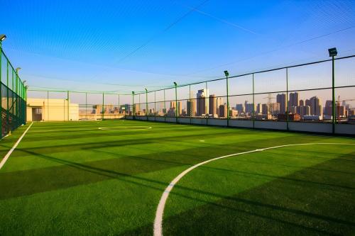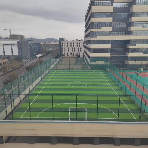 屋頂足球場人造草,指在城市建筑屋頂鋪設的合成草坪足球場。其優(yōu)勢包括節(jié)省土地資源、低維護成本、全天候可用。采用高耐用草絲與排水系統(tǒng),適配屋頂承重結構,結合減震層技術,保障運動安全,是城市空間高效利用的創(chuàng)新方案,推動立體運動場域發(fā)展。
