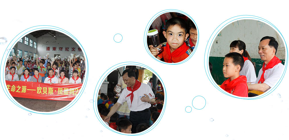 2014年6月24日,歐貝斯攜手鳳凰網(wǎng)“美麗童行”欄目,通過中國婦女發(fā)展基金會,對湖南省常德市安鄉(xiāng)縣三岔河鎮(zhèn)中學(xué)(小學(xué)部)進行了“歐貝斯?母親水窖校園安全飲水”援助項目。為學(xué)校的500多個小學(xué)生送去了凈水設(shè)備,解決了小學(xué)生們長期飲水困難的問題,并通過捐贈物資和資金的形式,讓家境貧困、缺少文娛活動的小學(xué)生們多享受一份童年的純真和快樂。