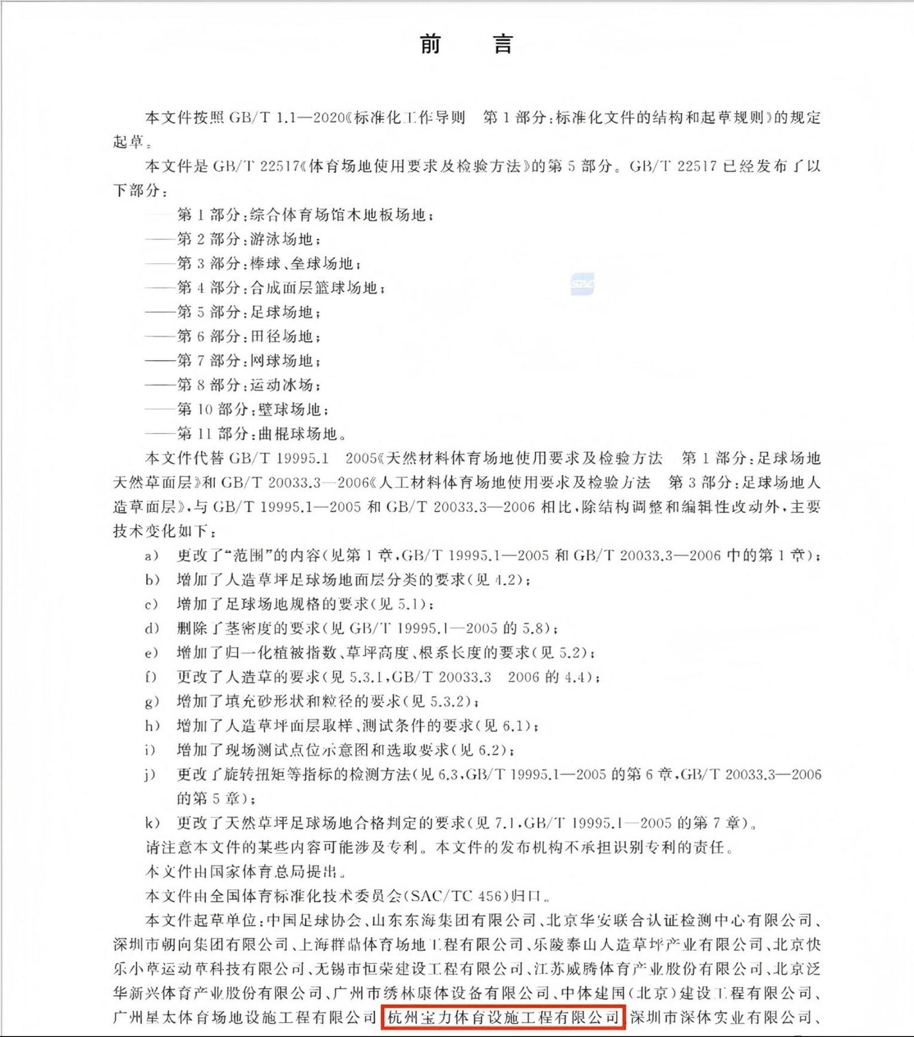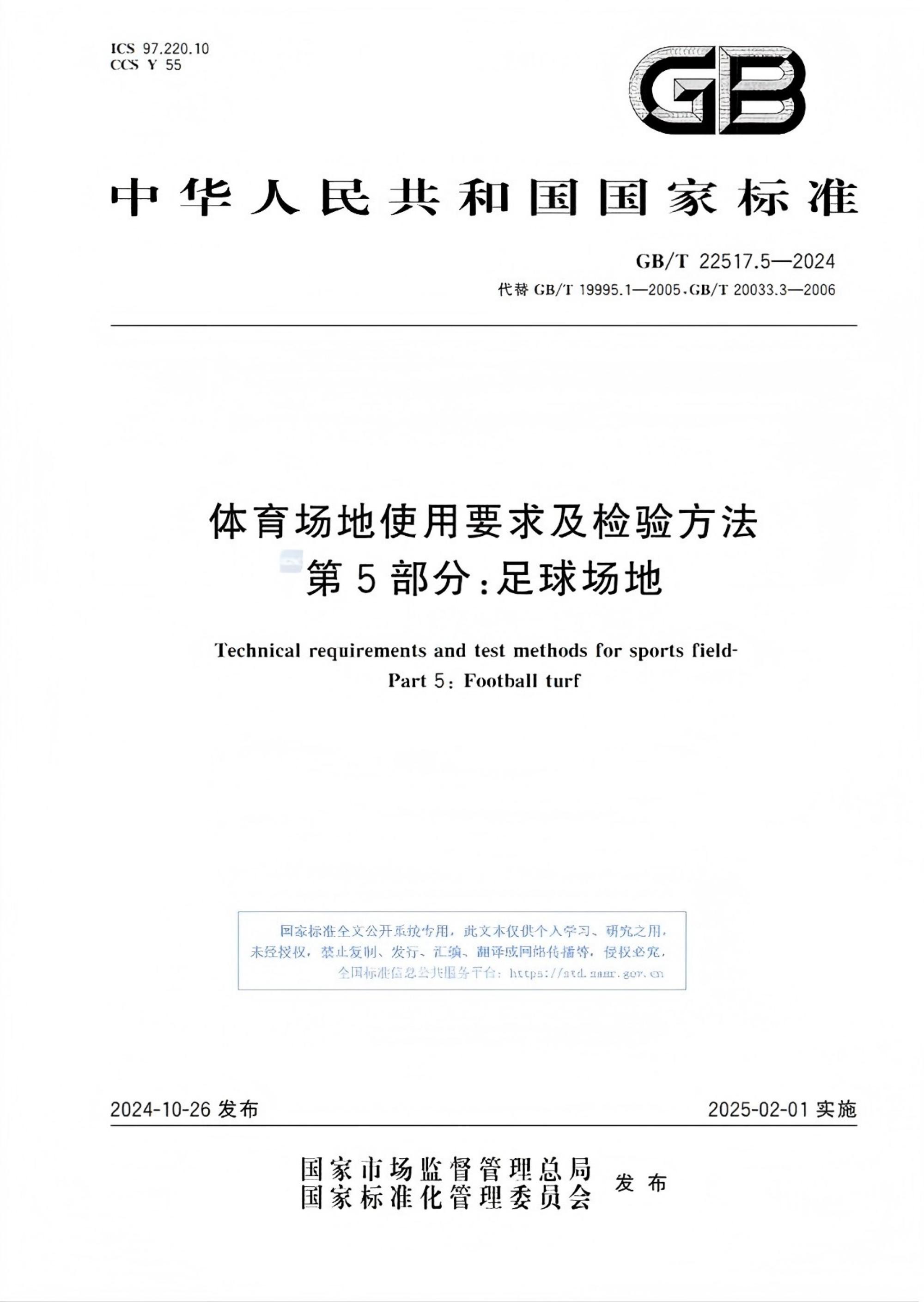 最新發(fā)布的國家標準GB/T 22517.5-2024《體育場地使用要求及檢驗方法 第5部分:足球場地》已于2025年2月1日正式實施。杭州寶力體育設施工程有限公司(以下簡稱“寶力體育”)深度參與了該標準的制定工作,以主要起草單位之一的身份為我國足球場地標準化建設提供專業(yè)技術支持。此項標準的實施標志著我國足球運動場地在規(guī)劃建設、質(zhì)量檢測等領域邁入規(guī)范化發(fā)展新階段。