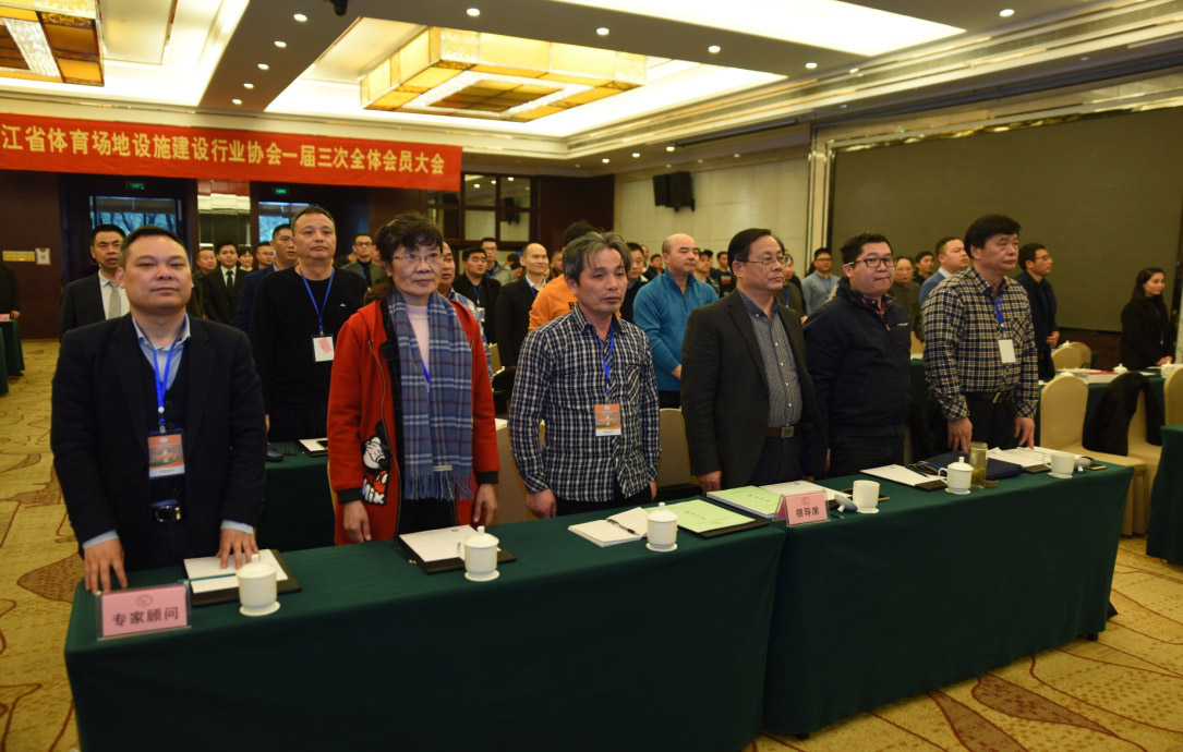 大會邀請了省政府相關部門領導與會指導,邀請了協(xié)會專家?guī)烊w專家、顧問和協(xié)會常年法律顧問列席大會,還邀請了協(xié)會所在地民主黨派——九三學社的領導列席了會議。會議由副會長杭州寶力體育設施工程有限公司付偉峰主持,大會在雄壯的國歌聲中開幕。