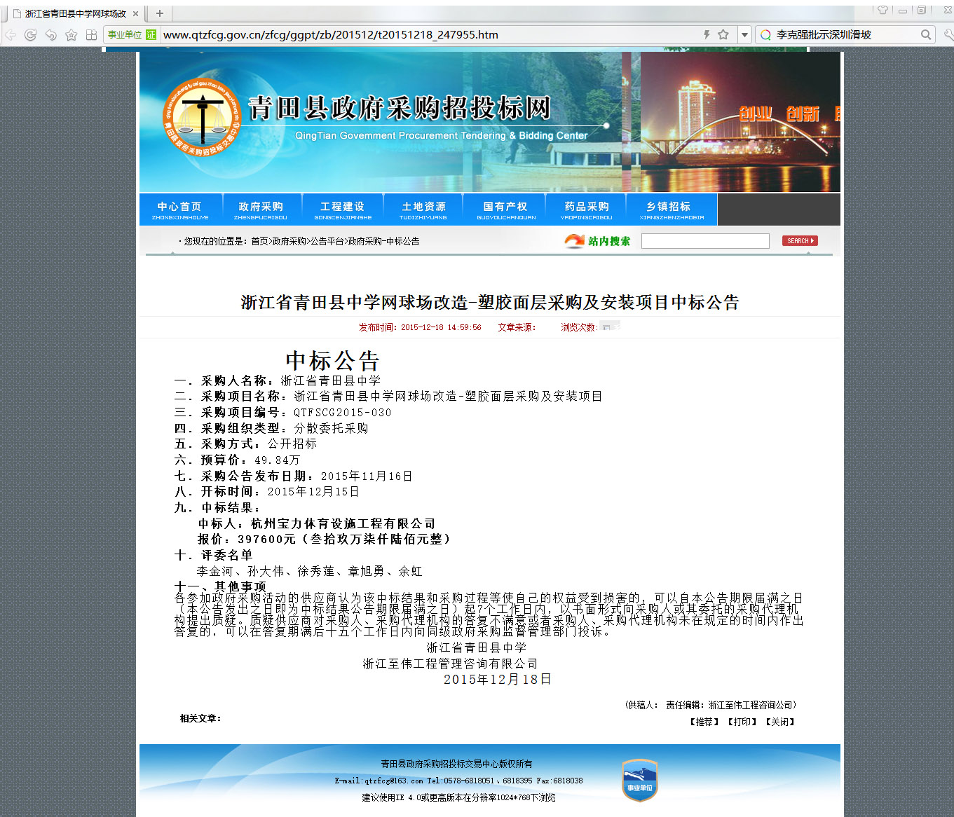 上一篇:浙江經(jīng)濟職業(yè)技術(shù)學院2015年室外球類場地改建項目