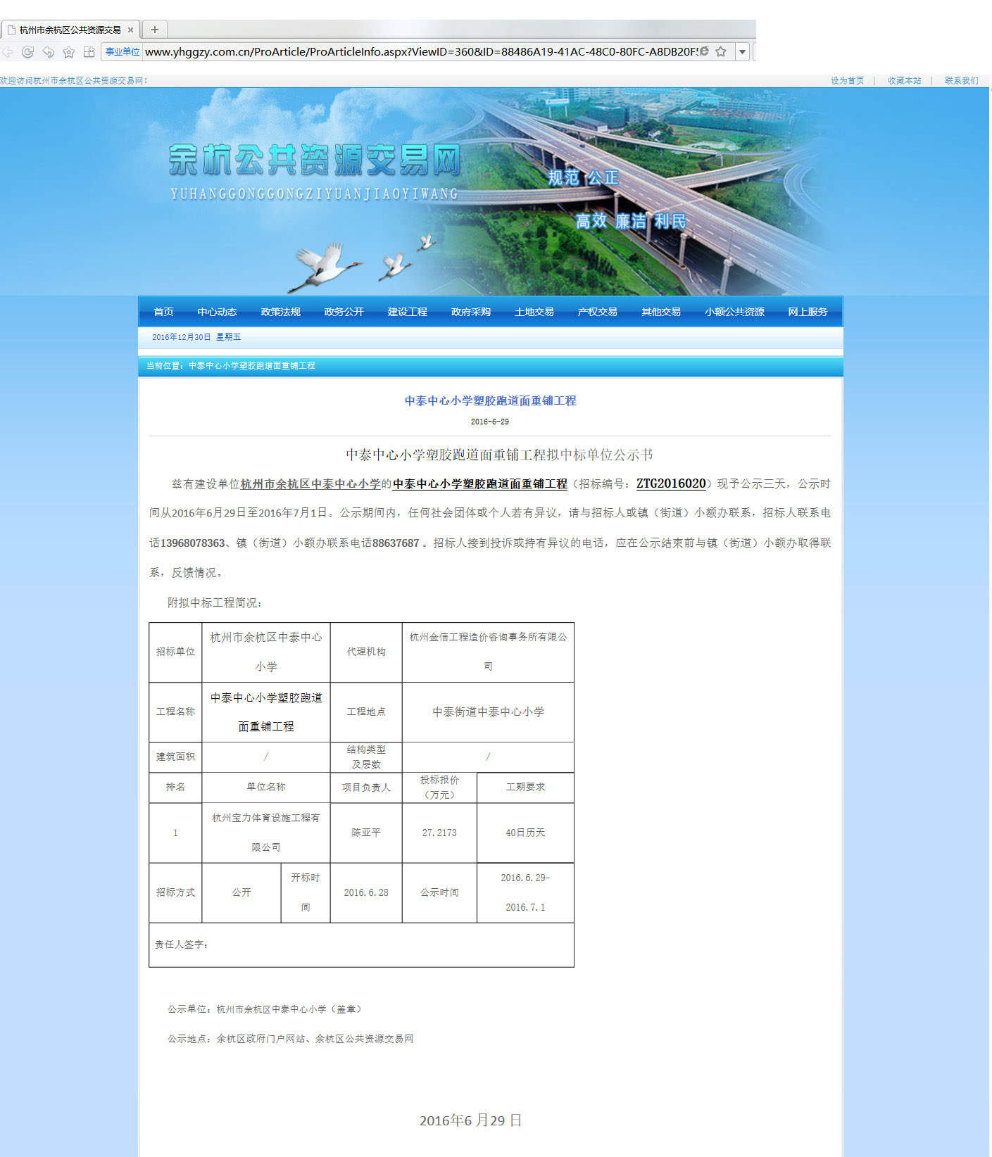 2016年6月29日中標(biāo)中泰中心小學(xué)塑膠跑道面重鋪工程