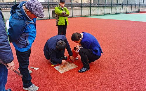 我塑膠跑道施工公司寶力體育專業(yè)工程技術(shù)人員,對(duì)運(yùn)動(dòng)場(chǎng)基礎(chǔ)工程實(shí)地察看,對(duì)于瀝青基礎(chǔ)存在問(wèn)題,根據(jù)以往的施工經(jīng)驗(yàn)和對(duì)標(biāo)準(zhǔn)場(chǎng)地要求的把握,提出了不同問(wèn)題及處理方案。