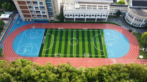2023年由杭州寶力體育設(shè)施工程有限公司承建的杭州師范大學(xué)附屬中學(xué)400米半預(yù)制塑膠跑道,人造草足球場(chǎng)以及采用EPDM環(huán)保顆粒鋪設(shè)的多功能運(yùn)動(dòng)地面,為學(xué)校體育教學(xué)與活動(dòng)提供了安全、專業(yè)的運(yùn)動(dòng)環(huán)境。