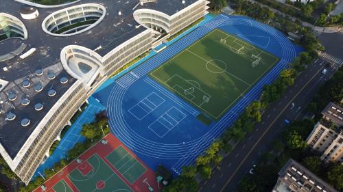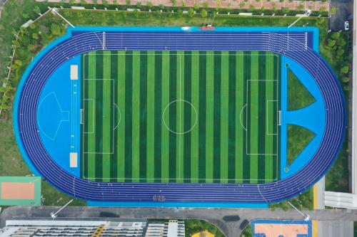 2024年由杭州寶力體育設(shè)施工程有限公司承建的舟山綠城南海實(shí)驗(yàn)學(xué)校400米透氣型跑道項(xiàng)目,采用國(guó)際標(biāo)準(zhǔn)藍(lán)色跑道搭配白色分道線;內(nèi)設(shè)綠色人工草坪足球場(chǎng),標(biāo)線精準(zhǔn)。周邊配建紅綠籃球場(chǎng)、標(biāo)準(zhǔn)化網(wǎng)球場(chǎng)及生態(tài)綠化帶。